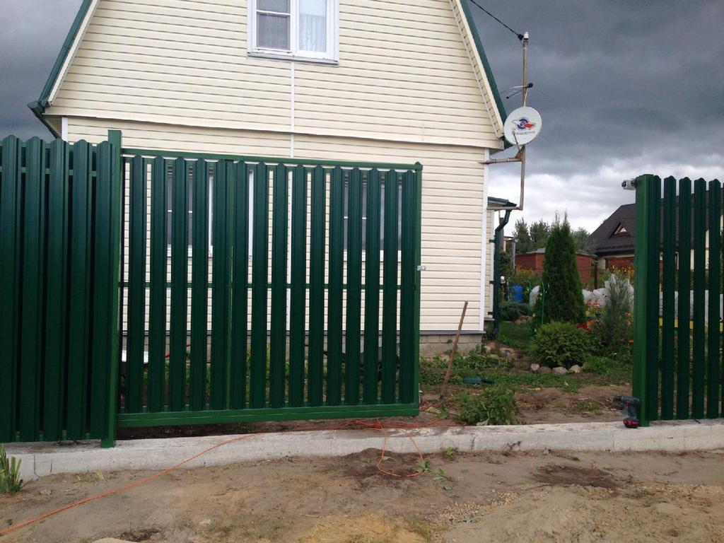 Откатные ворота из евроштакетника пример 1